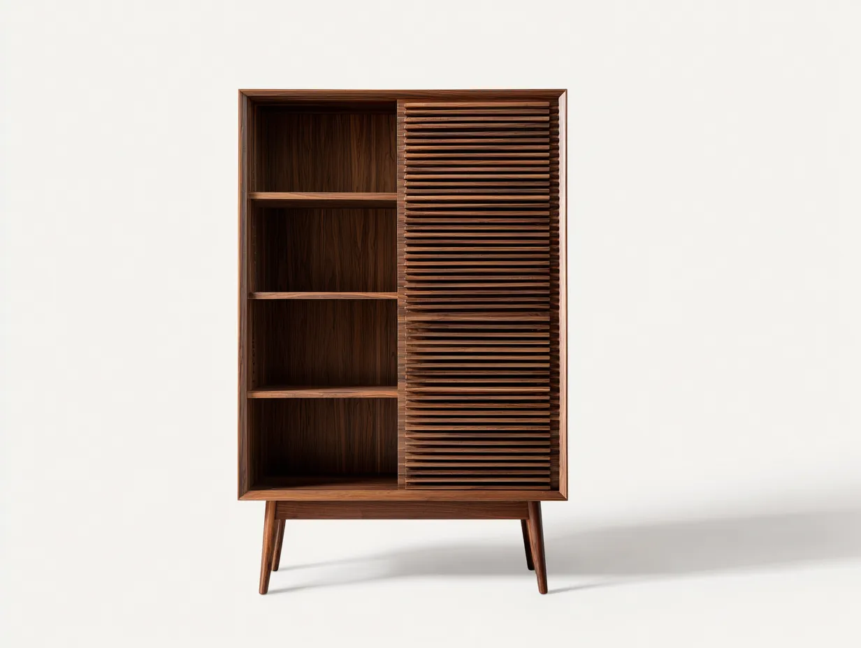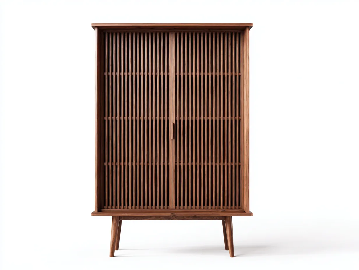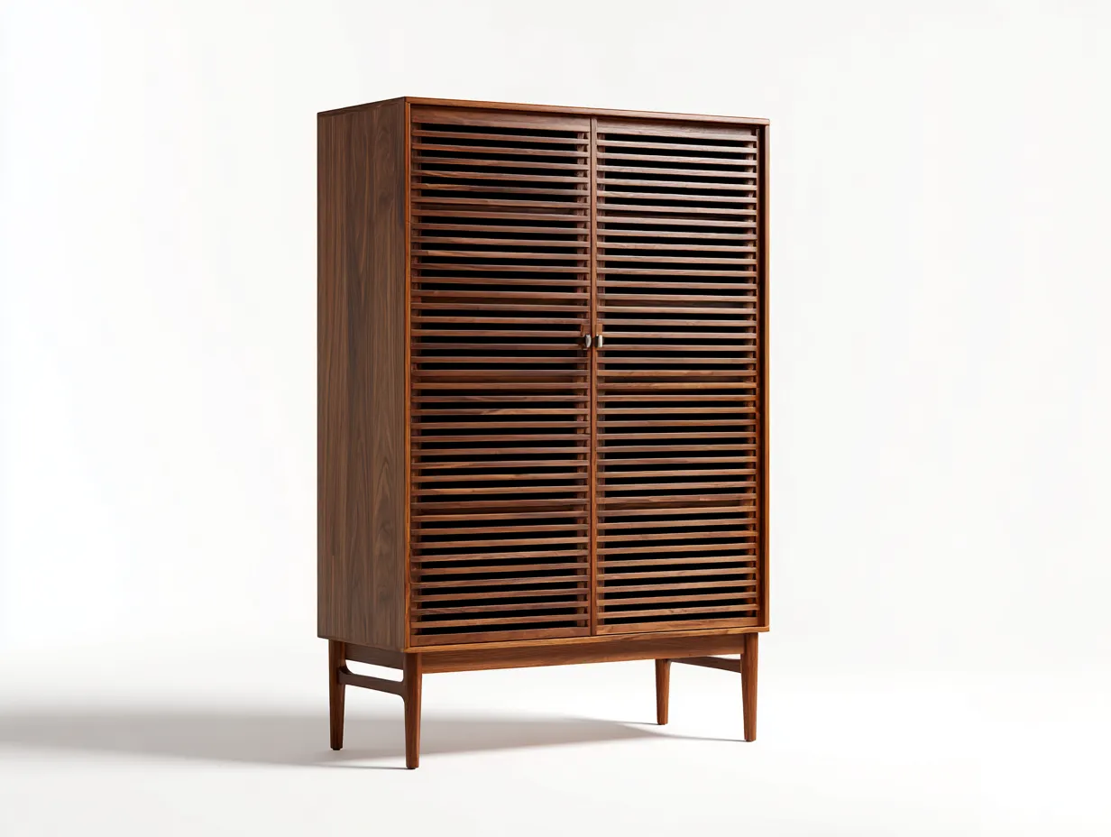 Armadio contenitore in legno 96x42x178 cm - noce medio - ante a doghe - design rétro per soggiorno