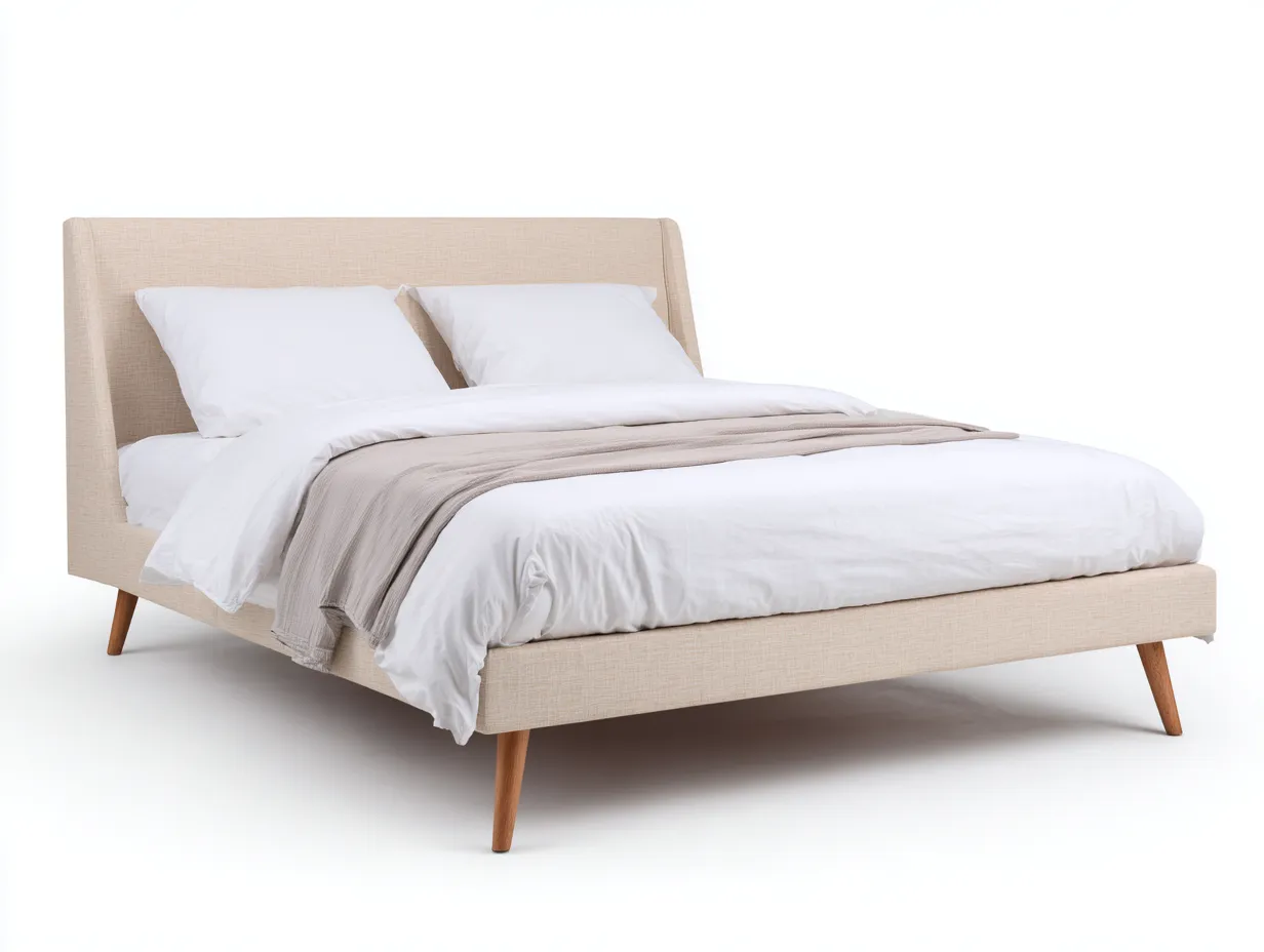 Questo letto matrimoniale imbottito in beige chiaro unisce linee essenziali, proporzioni leggere e un'eleganza rilassata, ideale per una camera da letto accogliente e luminosa. La testiera leggermente inclinata migliora il comfort quando ci si appoggia e dona alla struttura una presenza più morbida e raffinata. Il rivestimento tessile chiaro si abbina facilmente ad ambienti moderni, neutri o nordici, mentre i piedi in legno slanciati alleggeriscono visivamente l'insieme. È una scelta pratica per chi desidera un letto comodo, ordinato e facile da inserire in spazi contemporanei.