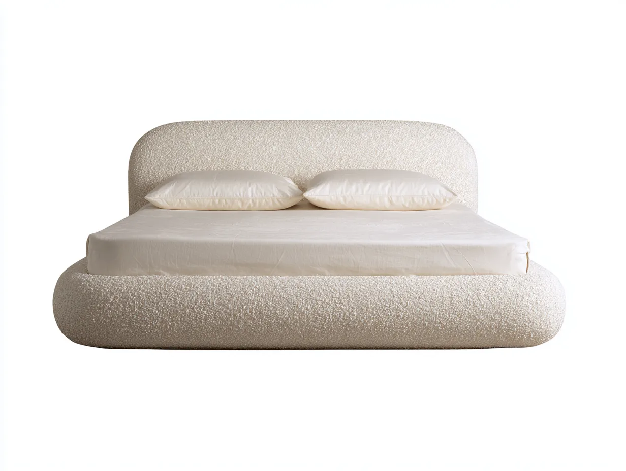Questo letto matrimoniale imbottito in bianco crema si distingue per le sue linee arrotondate e per l'estetica avvolgente, ideale per creare una camera da letto luminosa e rilassante. La testiera curva e la base morbida rivestita in tessuto bouclé donano una presenza elegante, delicata e molto attuale. Il profilo basso rende l'insieme più armonioso alla vista e aiuta a trasmettere una sensazione di calma e comfort quotidiano. Il tono chiaro si integra facilmente con ambienti moderni, neutri o dal gusto raffinato. È una scelta pensata per chi desidera un letto comodo, decorativo e visivamente accogliente.